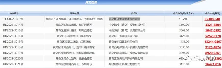 其中3016位于黄岛区东岳中路北,两河路西,占地面积5601㎡,规划总建面16803㎡,容积率≤3,为商住用地;成交楼面价3126元/㎡,总价5252万元。