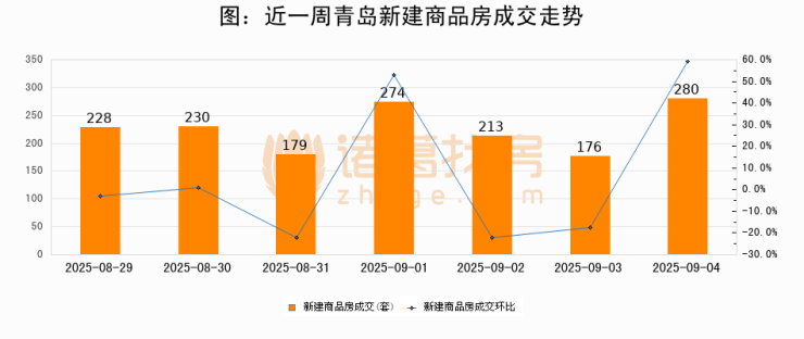 【青岛成交日报】09月04日新房成交280套、二手房201套;