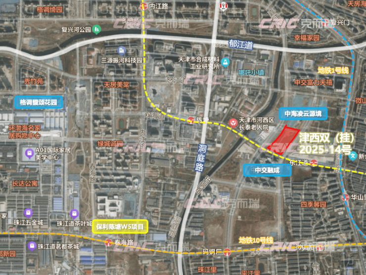而位于河西区的陈塘F9地块(津西双(挂)2025-14号)起始总价6.64亿元,起始楼面价18845元/平方米,最终由中海地产旗下的天津中海海盛地产有限公司以成交总价7.4亿元,成交楼面价21002元/平方米竞得,溢价率11.45%。