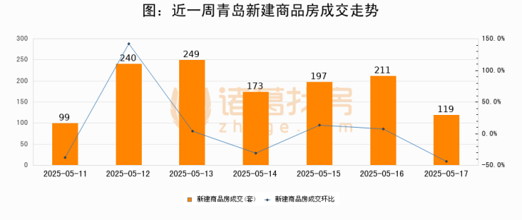 【青岛成交日报】05月17日新房成交119套、二手房68套;