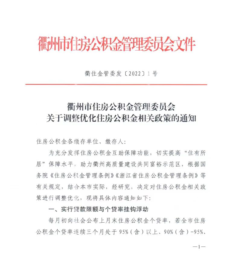 2月15日,浙江省衢州市住房公积金管理委员会发布《关于调整优化住房公积金相关政策的通知》(简称《通知》),按照新政,衢州市住房公积金贷款额度调整为家庭较高80万元,个人较高50万元。