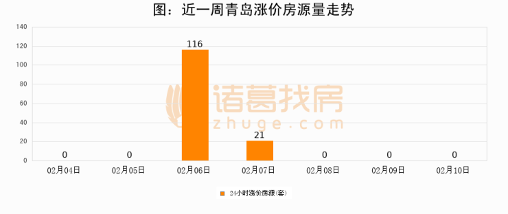 根据诸葛找房数据显示,青岛24小时涨价房源量为0套,较02月09日持平。