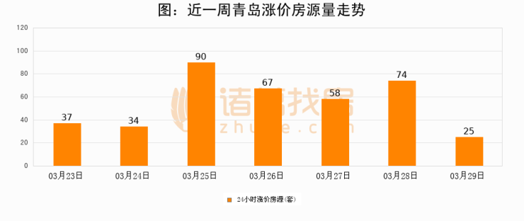 根据诸葛找房数据显示,青岛24小时涨价房源量为25套,较03月28日减少49套,环比下降66.2%。与此同时,涨价房源占比小幅回落,对于购房者来说是一个入市窗口期,购房者可抓住时机入市。
