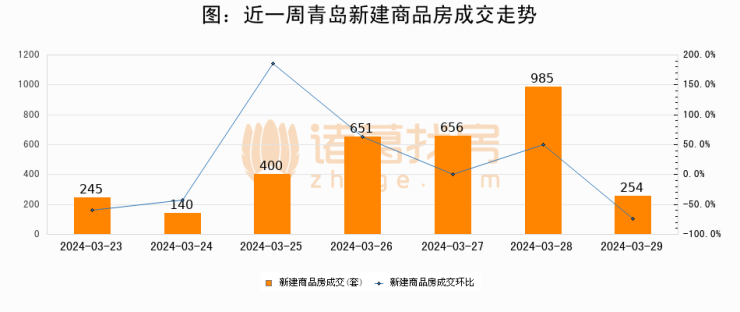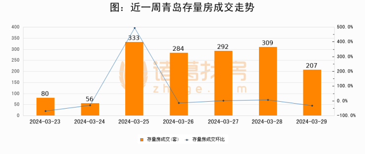 【青岛成交日报】03月29日新房成交254套、二手房207套;涨价房源25套