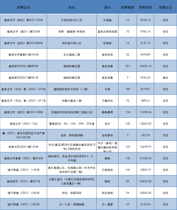 青岛市商品房预售许可证获取情况