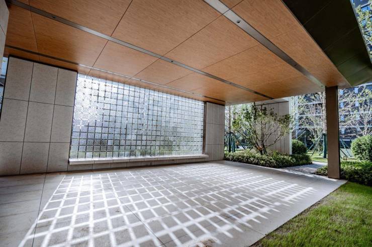 在此次开放活动中,园区品质的全面提升成为备受关注的亮点。归家动线沿袭三重礼序理念,从入口的对称景墙、苍劲迎客松与静水面相映的迎宾之境,到通道两侧绿意延展的仪式序列,每一步皆彰显归家的庄重与从容。尤为值得一提的是,单元门全新升级为人脸识别自动开启系统,门扉轻启间,归家仪式更添智能与尊崇,无需手动推门,从容入户。