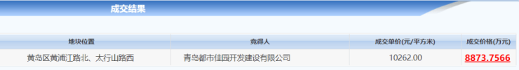 楼板价10262元/㎡ 都市佳园摘得黄岛中海半山雲境旁低密地块