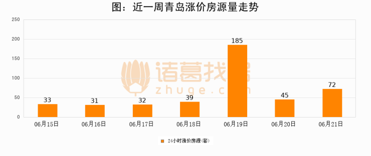 根据诸葛找房数据显示,青岛24小时涨价房源量为72套,较06月20日增加27套,环比上涨60%。与此同时,涨价房源占比小幅扩大,业主信心有所提升。