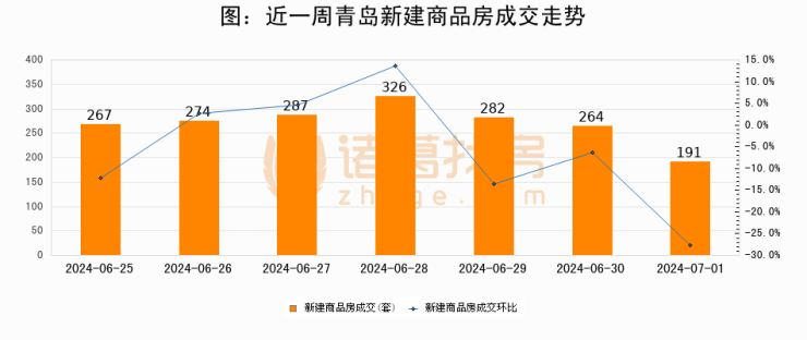 【青岛成交日报】07月01日新房成交191套、二手房255套;涨价房源37套