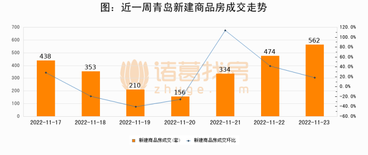 【青岛成交日报】11月23日新房成交562套、二手房224套;涨价房源92套