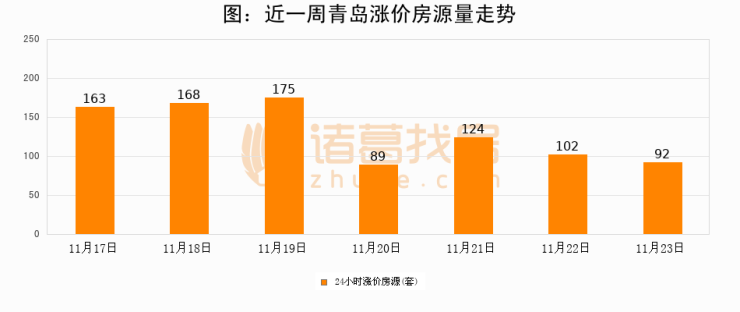 根据诸葛找房数据显示,青岛24小时涨价房源量为92套,较11月22日减少10套,环比下降9.8%。与此同时,涨价房源占比小幅回落,对于购房者来说是一个入市窗口期,购房者可抓住时机入市。