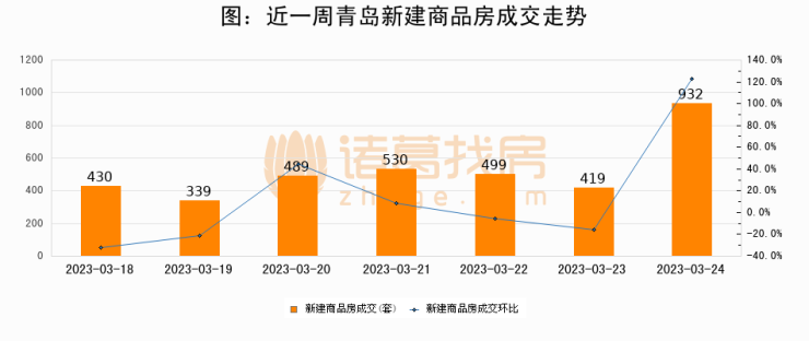 【青岛成交日报】03月24日新房成交932套、二手房312套;涨价房源151套