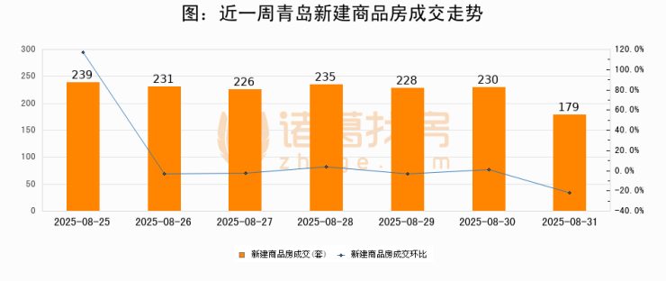 【青岛成交日报】08月31日新房成交179套、二手房46套;
