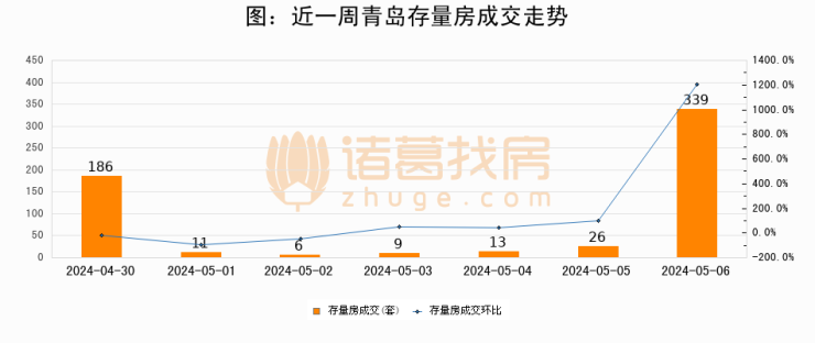 【青岛成交日报】05月06日新房成交186套、二手房339套;涨价房源12套