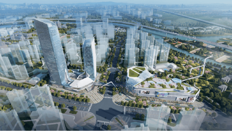 片区打造大型商业综合体及超高层地标写字楼,将商业、办公与轨交密切联系,充分利用轨交人流打造乐活商业、办公空间,提升区域价值。