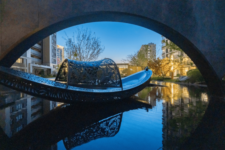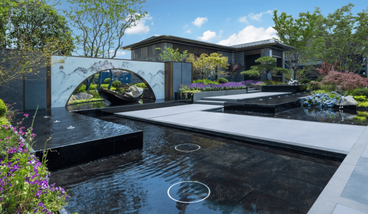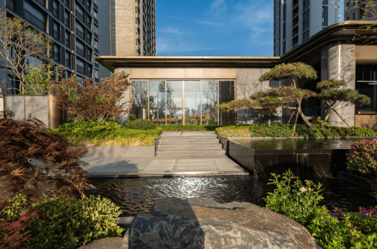 海信·悦澜山全维实景示范区,融合自然现代美学,营造东方奢雅的艺术体验,打造“锦绣六境 艺术五园”景观园林,石、林、水、花、周、景墙等点缀其中,一步一景一画卷,展现繁华深处一处静谧留白时光。