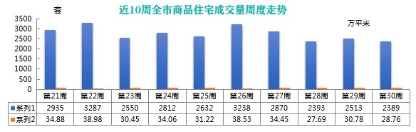 根据卓易数据统计,上周(7.19-7.25)青岛新建商品住宅成交2389套,环比下降4.93%;成交面积为28.76万㎡,环比下降6.56%。