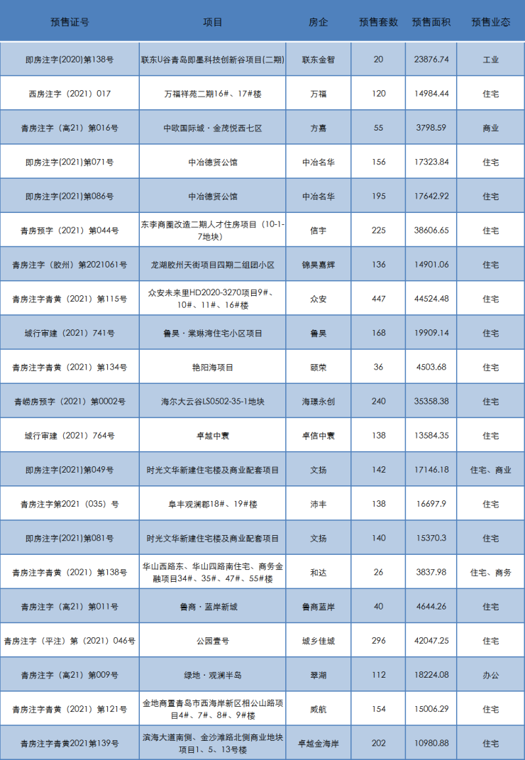 *政策方面:青岛市住房和城乡建设局正式发布《青岛市“十四五”住房发展规划》,提出全市新增城镇住房70万套左右,到2025年末城镇人均住房建筑面积达到36.2平方米。