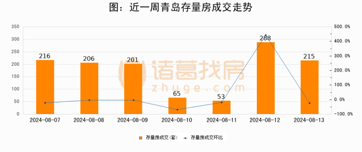 【青岛成交日报】08月13日新房成交112套、二手房215套;涨价房源67套