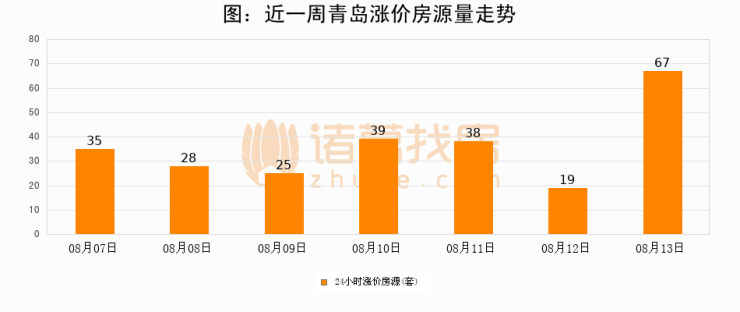 根据诸葛找房数据显示,青岛24小时涨价房源量为67套,较08月12日增加48套,环比上涨252.6%。与此同时,涨价房源占比小幅扩大,业主信心有所提升。