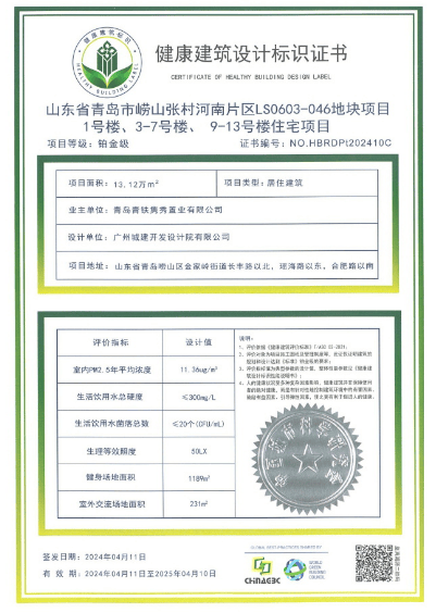 秉承“先做大公园,再做大规划,在公园里种房子”的设计理念,在社区空间上和樾府基于人本与健康的全方位考量,重塑建筑标准,以卓越品质成为青岛首个荣获“健康建筑设计标识铂金级”认证的住宅项目,达到“绿建三星”满格标准,为业主带来更节能、更舒适、更智能的生活方式。