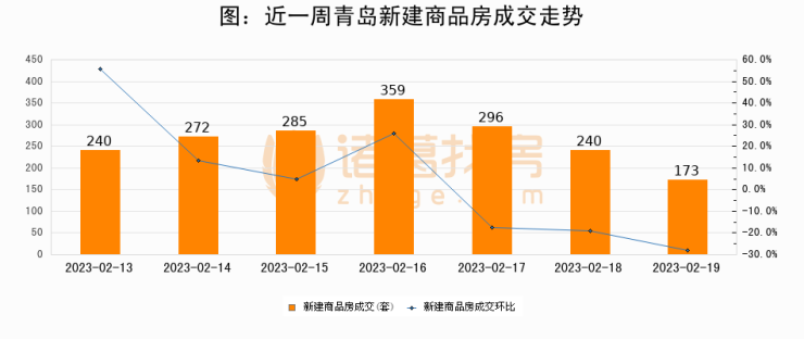 【青岛成交日报】02月19日新房成交173套、二手房25套;涨价房源201套