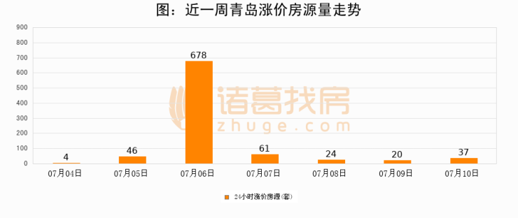 根据诸葛找房数据显示,青岛24小时涨价房源量为37套,较07月09日增加17套,环比上涨85%。与此同时,涨价房源占比小幅扩大,业主信心有所提升。