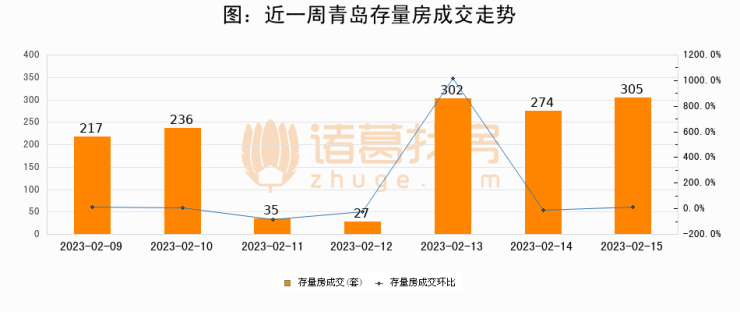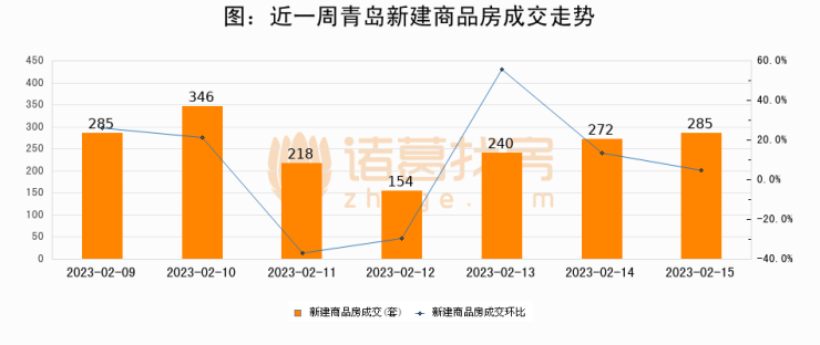 【青岛成交日报】02月15日新房成交285套、二手房305套;涨价房源237套