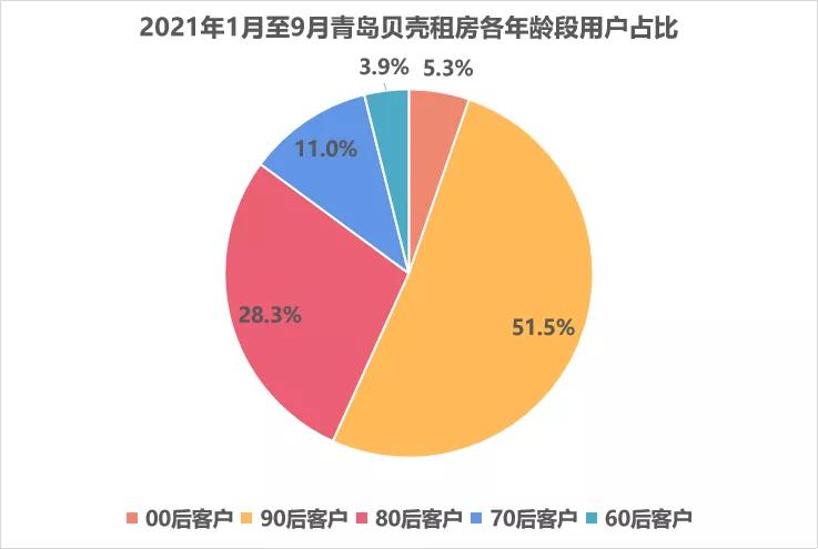 青年人一直是租房市场的主要消费人群。青岛贝壳研究院数据显示,2021年1月至9月青岛贝壳租房各年龄段用户中,90后、00青年群体占比为56.8%。