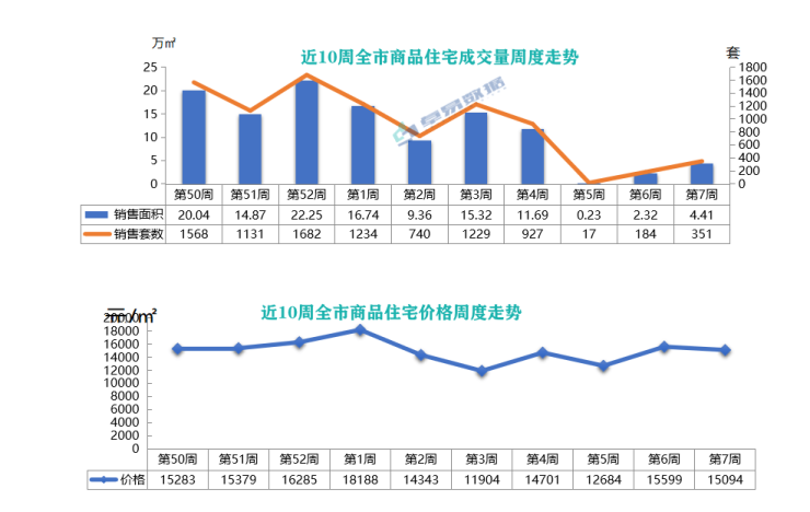 价格方面,上周青岛新建商品住宅均价为15094元/㎡,下降505元/㎡,降幅为3.24%。