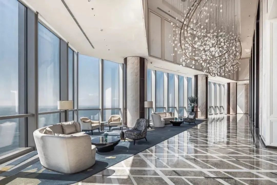 海天中心自2021年6月20日盛大启幕后不久就成为青岛特色地标建筑和城市“会客厅”,在运营半年时间里已赢得2021中国楼宇经济新地标、中国较佳新开业酒店、游客最喜爱的旅游打卡地等多项荣誉。且酒店入住率、餐饮上座率、住宅出售面积和游客接待数量等均已达到行业先进状态。