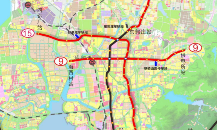 地铁三期规划中,主城与城阳之间,除了原有的M7之外,还沿黑龙江路规划M15,不但改善了李村北丹山板块的公共交通问题,也为正在形成居住规模的夏庄北部区域解决了出行问题。值得注意的是,M15纵穿城阳中心城区后西向进过即墨南部,止于棘洪滩的动车小镇。与此同时,东西走向的M9,横穿整个城阳中部,与M7、M15两两相交,一个区域地铁网络在城阳形成,惜福镇、城阳北、棘洪滩等原本主城外溢刚需不会考虑的区域,都能享受到地铁的红利。