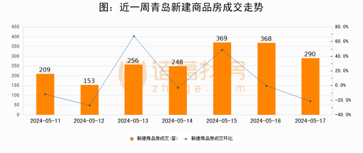 【青岛成交日报】05月17日新房成交290套、二手房251套;涨价房源42套