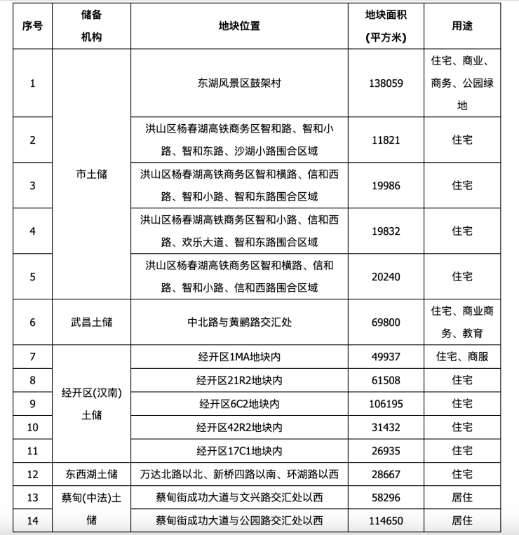 武汉:14宗地移出第四批次拟供地项目清单 结转至后续批次清单