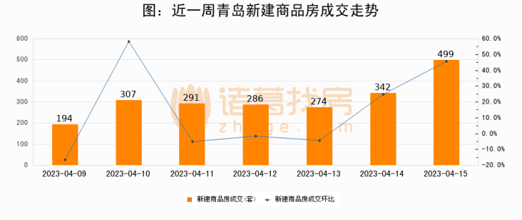 【青岛成交日报】04月15日新房成交499套、二手房49套;涨价房源95套