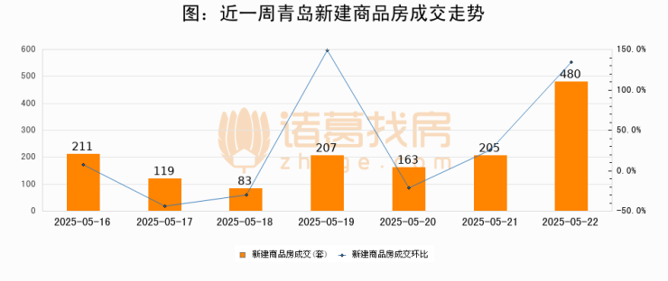 【青岛成交日报】05月22日新房成交480套、二手房273套;