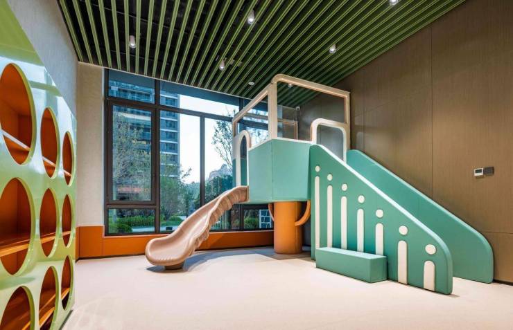 同时,还打造约4.8m挑高架空层,引进瑜伽室、品茗区、阅读书吧、四点半学堂、森悦乐园等丰盈场景。这里可以是会客厅,三五知己晤谈叙旧;可以是孩子的乐园,亲子陪伴、游乐欢趣;也可以是父母的康养天地,无论是畅游书海、还是和友邻趣味桌游,都能感受岁月的美好……