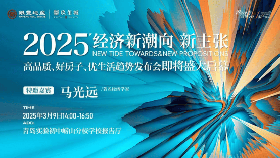 3月9日,青岛市“高品质、好房子、优生活趋势发布会”马光远博士将作为特邀嘉宾出席活动,为大家深度预测2025经济新风向,全面解读未来人居发展新趋势!