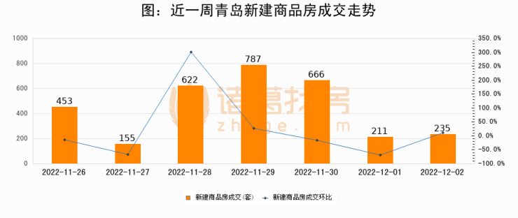 【青岛成交日报】12月02日新房成交235套、二手房173套;涨价房源141套