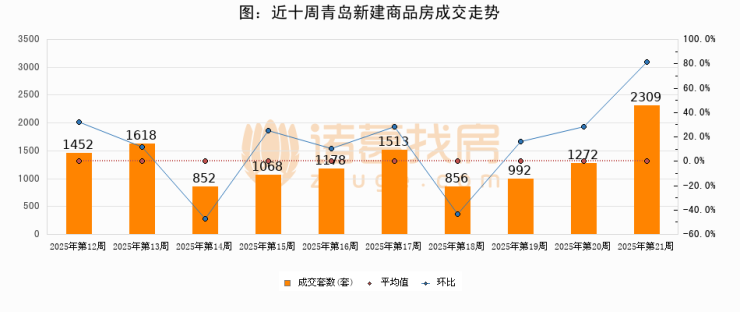 【青岛成交周报】第21周新房成交2309套,二手房1488套,