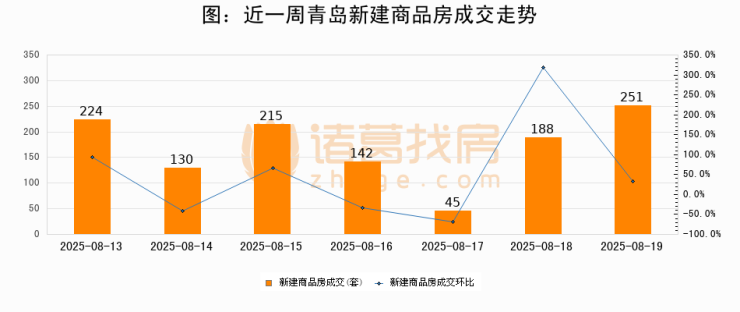 【青岛成交日报】08月19日新房成交251套、二手房225套;