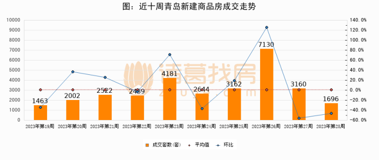 【青岛成交周报】第28周新房成交1696套,二手房1155套,涨价房源374套
