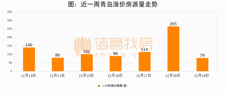 根据诸葛找房数据显示,青岛24小时涨价房源量为79套,较12月18日减少186套,环比下降70.2%。与此同时,涨价房源占比小幅回落,对于购房者来说是一个入市窗口期,购房者可抓住时机入市。