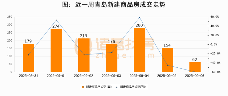 【青岛成交日报】09月06日新房成交62套、二手房55套;