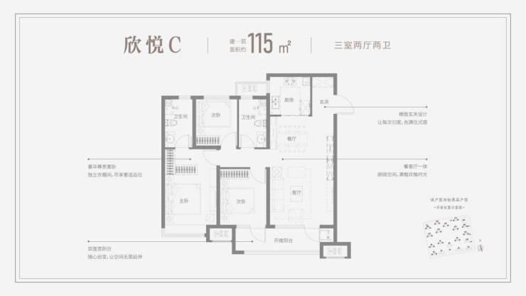 建面约 105㎡和 115㎡的套三双卫户型,三面采光,LDK 一体化设计,双联阳台和 270° 环幕飘窗,采光、视野直接拉满。特别是 115㎡户型沿祥源路 4 栋楼的西户,把一线河景和公园美景 “一网打尽”,这景观视野,谁看了不心动!