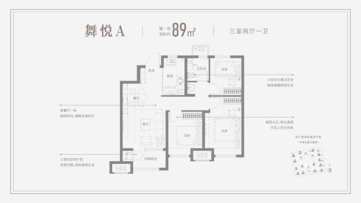 建面约 89 平的套三户型,总价不到100 万,对刚需来说太友好了!户型南北通透,主卧、次卧、客厅三开间朝南,U 型厨房操作超方便,动静分区合理,小家庭住刚刚好。