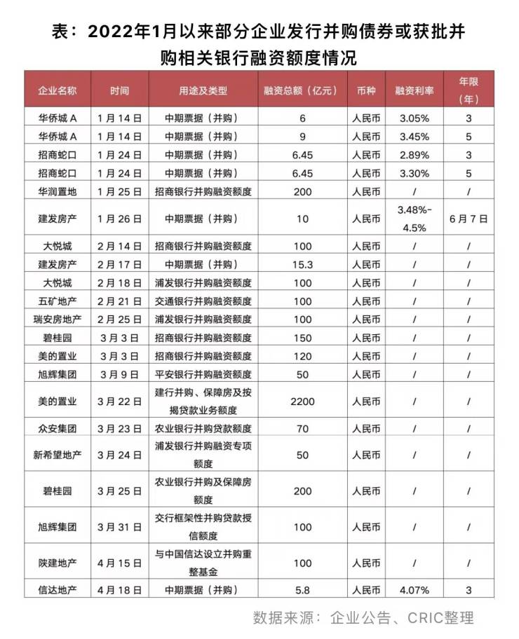 针对出险企业的并购融资,政策也给予了较大程度的支持,3月以来更多的房企与金融机构建立了并购融资协议,获得并购融资额度,除了华侨城、招商蛇口、建发房产、华润置地、大悦城等央企国企成功发行并购中期票据或者获批并购融资额度之外,另有旭辉、五矿地产、碧桂园、美的置业、新希望地产等民营企业并购融资额度获批。克而瑞认为,受房地产市场持续转冷及疫情反复影响,上半年整体市场依然不容乐观。虽然政策暖风不断,目前已达“政策底”,但当前楼市不确定性仍然较强,未来房企之间资产的流动性会进一步加强,对于优质房企而言是一个好机会。