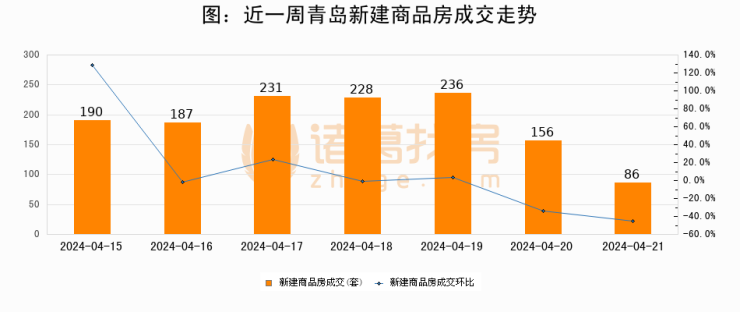 【青岛成交日报】04月21日新房成交86套、二手房59套;涨价房源17套