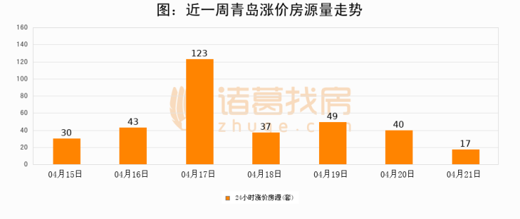 根据诸葛找房数据显示,青岛24小时涨价房源量为17套,较04月20日减少23套,环比下降57.5%。与此同时,涨价房源占比小幅回落,对于购房者来说是一个入市窗口期,购房者可抓住时机入市。
