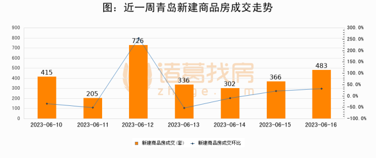 【青岛成交日报】06月16日新房成交483套、二手房198套;涨价房源44套